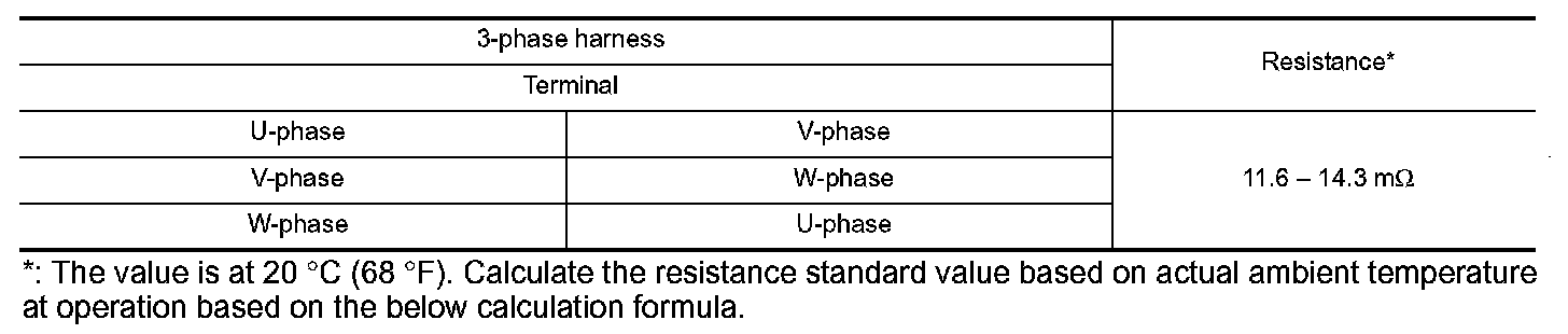 *: The value is at 20 �C (68 �F). Calculate the resistance standard value based on actual ambient temperature at operation based on the below calculation formula.