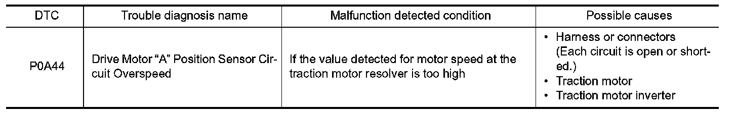 Check the traction motor resolver. Refer to "Component Inspection (Traction Motor Resolver)" .