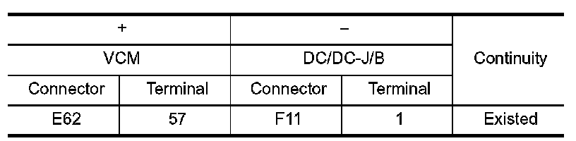 3.Check the continuity between VCM harness connector and DC/DC junction box harness connector.