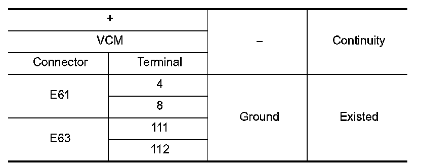 3.Check the continuity between VCM harness connector and ground.