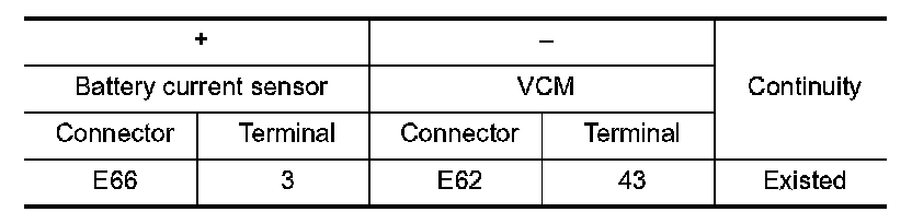 1.Check the continuity between battery current sensor harness connector and VCM harness connector.