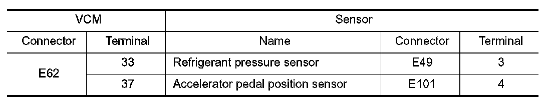 2.Check the voltage between VCM harness connector terminals.