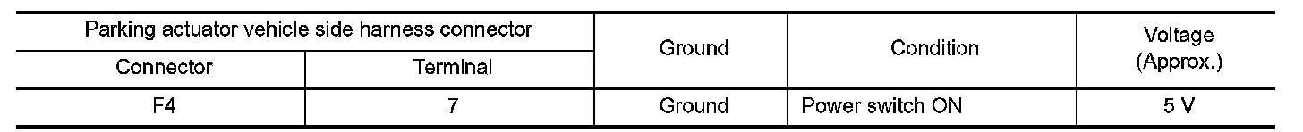 3.Check the voltage between parking actuator vehicle side harness connector terminal and ground.