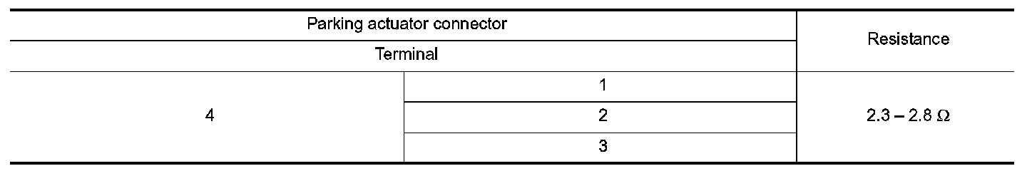 2.Check the resistance between parking actuator connector terminals.