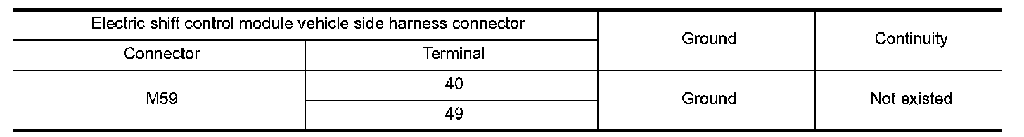 4.Check the continuity between electric shift control module vehicle side harness connector terminals and ground.