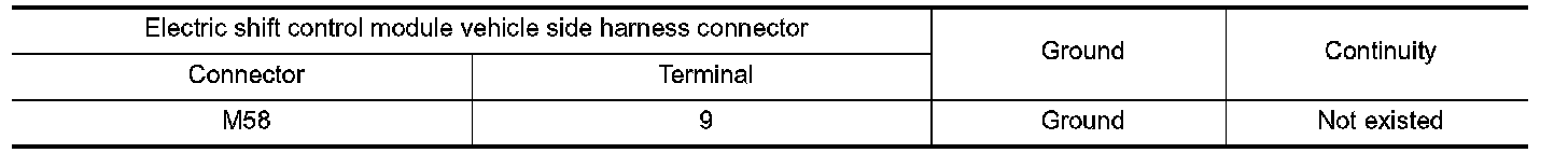 3.Check the continuity between electric shift control module vehicle side harness connector terminals and ground.