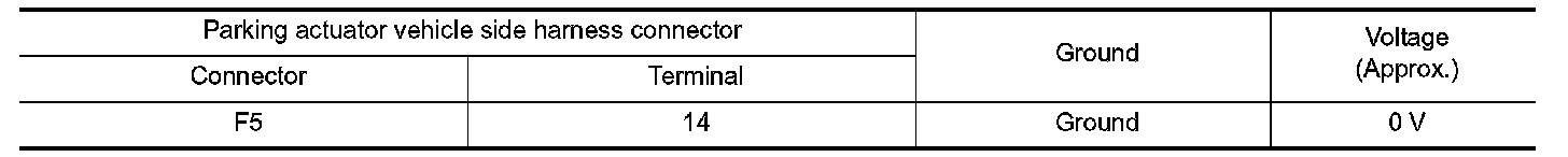 2.Check the voltage between parking actuator vehicle side harness connector terminal and ground.