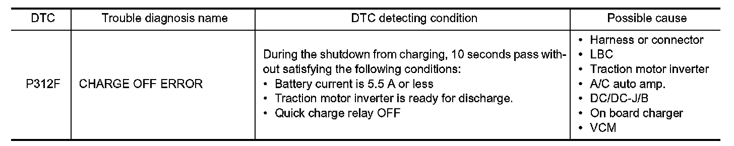 If DTC P312F is displayed with DTC P0A08, P317A, P3191, P3196, P319C, P31A1, P31A7, or P31AE, perform diagnosis for DTC P0A08, P317A, P3191, P3196, P319C, P31A1, P31A7, or P31AE.