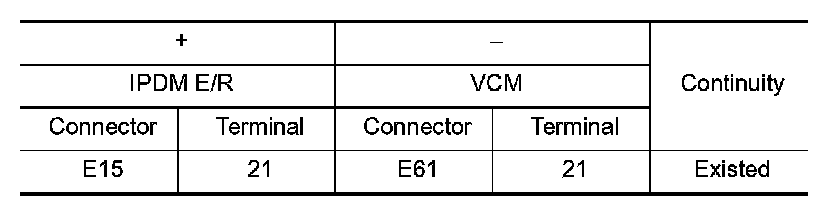 3.Check the continuity between VCM harness connector and IPDM E/R harness connector.
