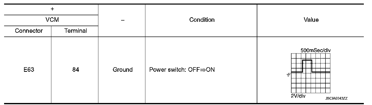 3.Check the voltage between VCM harness connector and ground under the following condition.