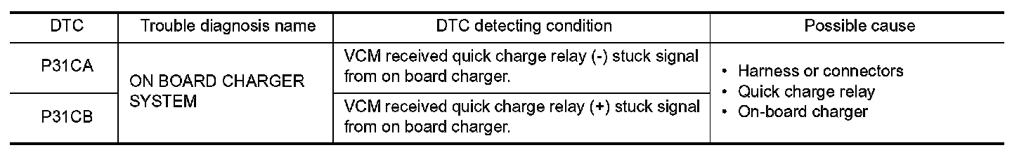 2.Perform the DTC confirmation procedure again using a quick charger other than the one that is used for the initial confirmation procedure. Refer to "DTC Logic" .