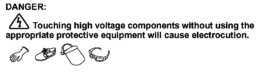 Touching high voltage components without using the appropriate protective equipment will cause electrocution.