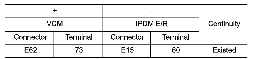 3.Check continuity between VCM harness connector and IPDM E/R harness connector.