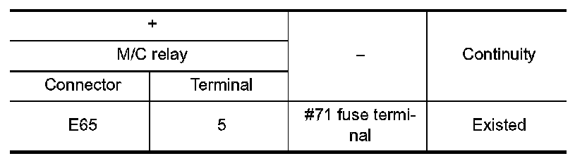 2.Check the continuity between M/C relay harness connector and fuse terminal.
