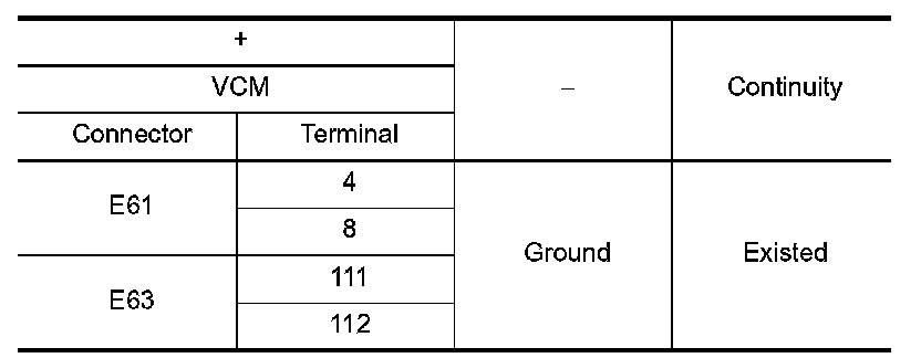 3.Check the continuity between VCM harness connector and ground.