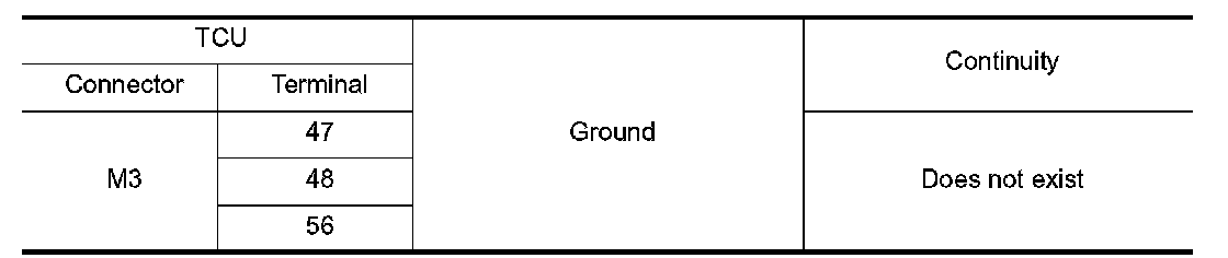 4.Check the continuity between TCU vehicle-side harness connector and ground.