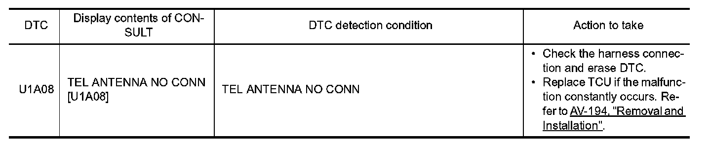 YES- Replace TEL antenna. Refer to "Removal and Installation" Telematics System.