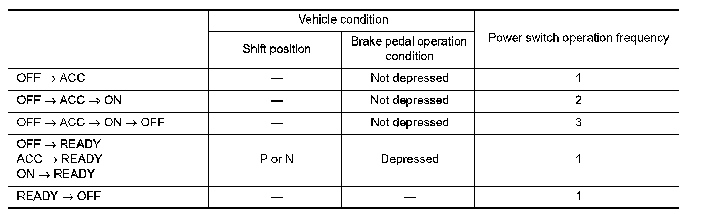 READY SET CONDITION TABLE BY POWER SWITCH OPERATION