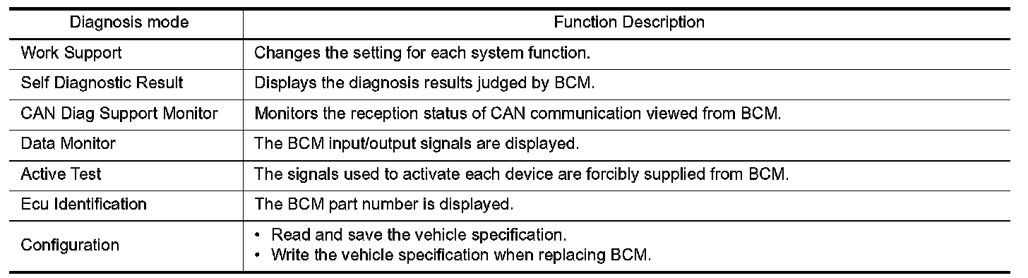 CONSULT performs the following functions via CAN communication with BCM.