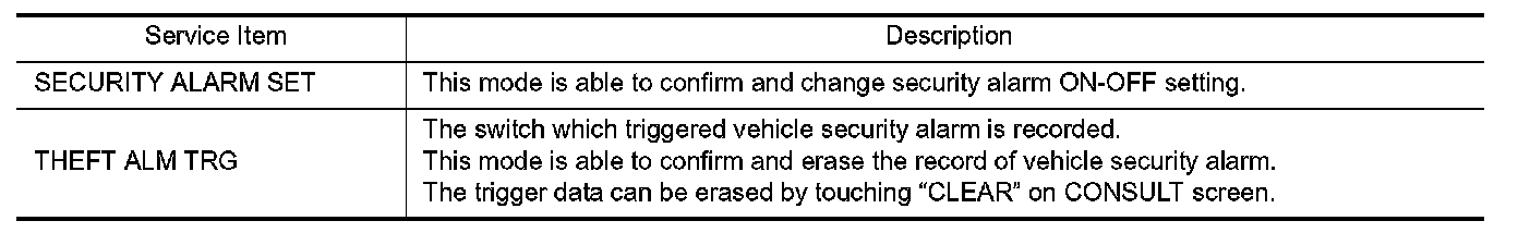 THEFT ALM : CONSULT Function (BCM - THEFT)