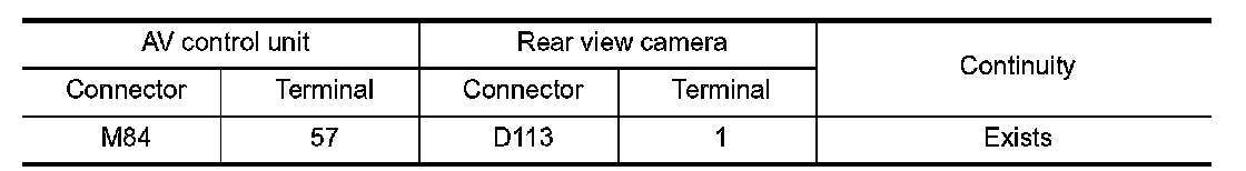 3.Check for continuity between the AV control unit harness connector and rear view camera harness connector.