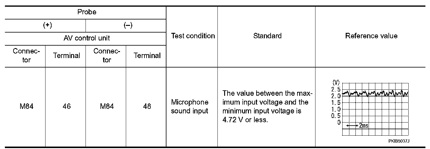 4.Check signals between the AV control unit harness connector terminals.