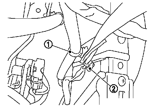 4.Remove the harness fixing clip (1) and antenna feeder fixing clip (2) from the upper bracket.