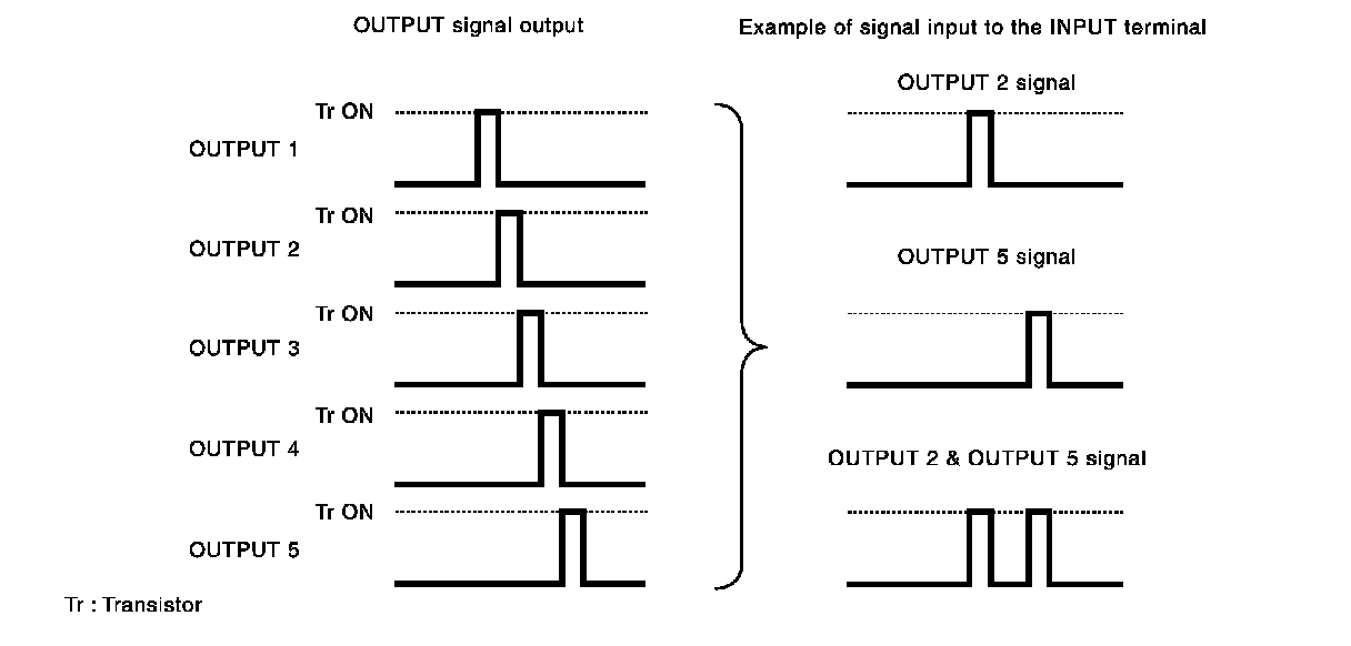 - It operates the transistor on OUTPUT side in the following order: OUTPUT 1 2 3 4 5, and outputs voltage waveform.