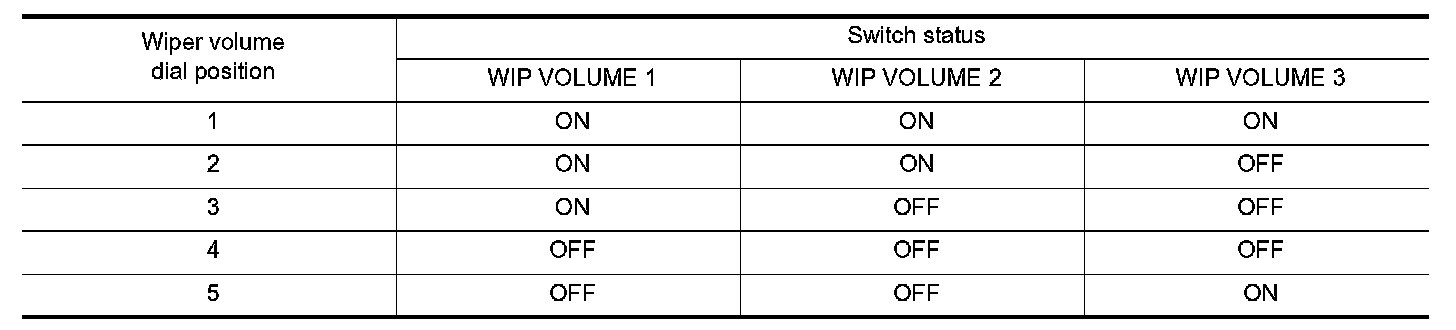 BCM judges the wiper volume dial 1 - 7 by the status of WIP VOLUME 1, 2 and 3 switches.