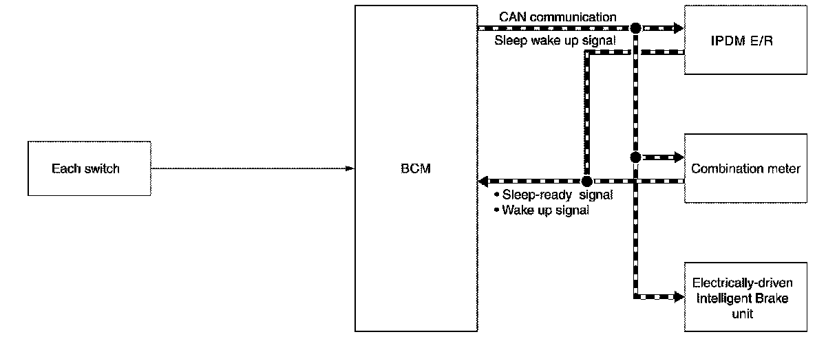 - Each unit stops the transmission of CAN communication with the sleep wake up signal. BCM is in CAN communication sleep mode.