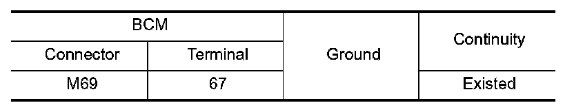 Check continuity between BCM harness connector and ground.