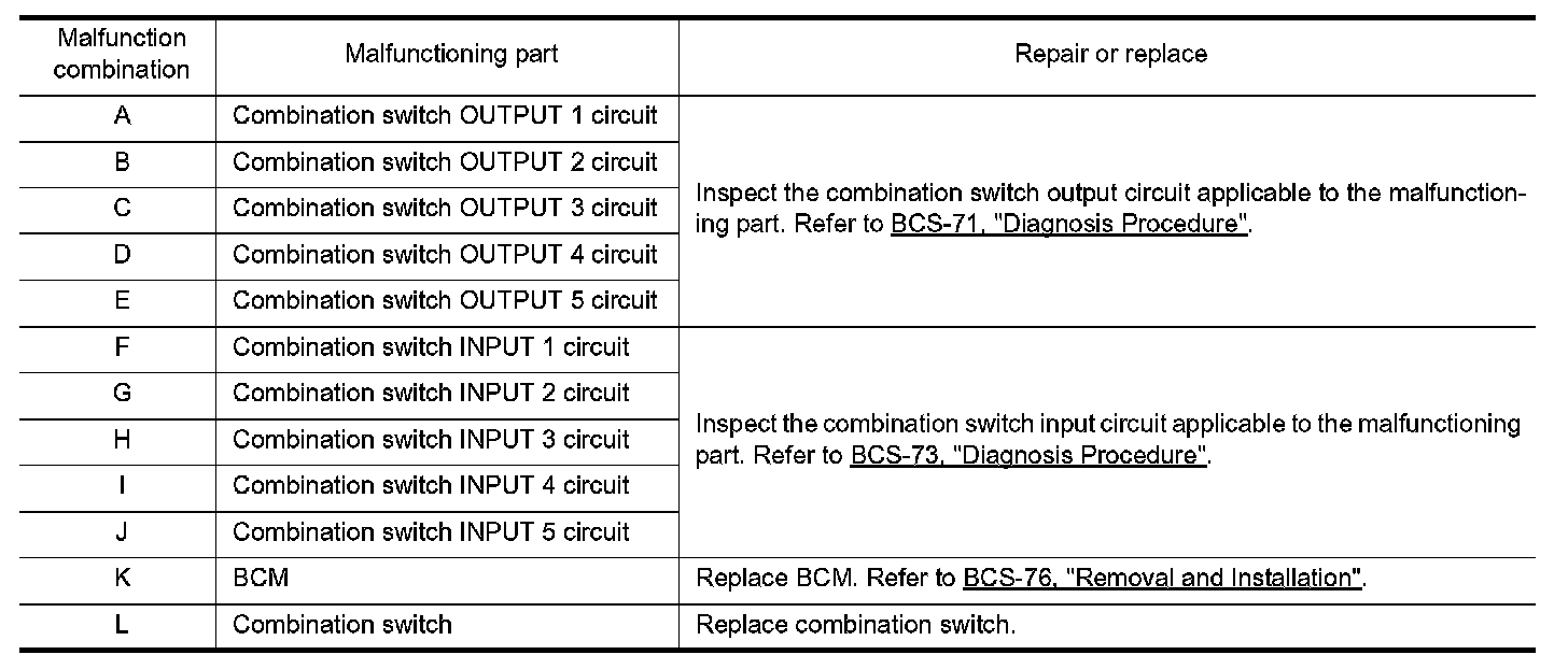 2.Check the malfunction combinations.