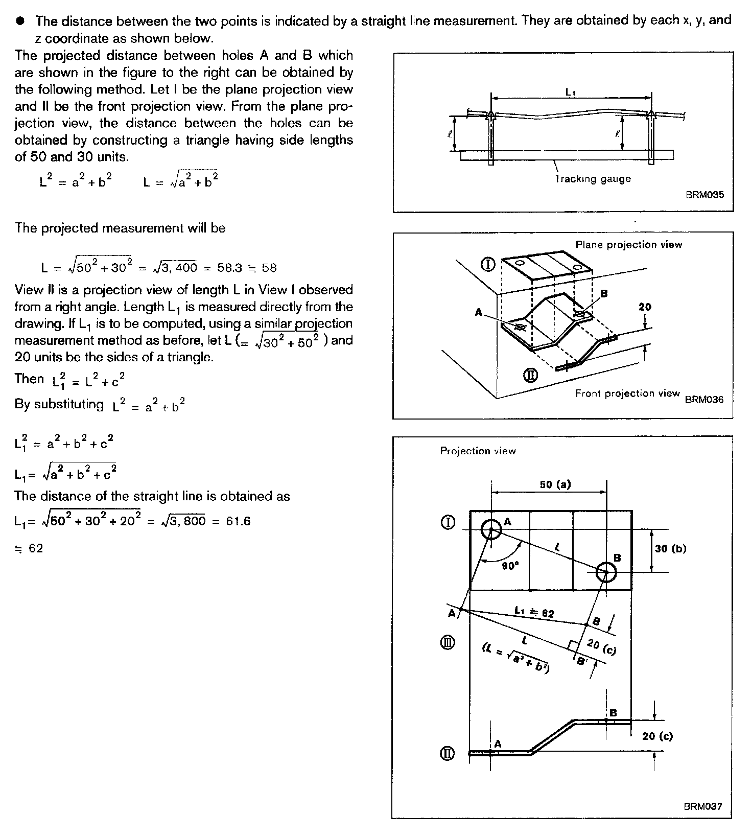 The Body Repair Manual published for each model includes body alignment drawings, body center marks and panel matching marks. These are used to measure the extent of damage done (deformation extent) and to make sure that the dimensions of the body are correct after making the repair.