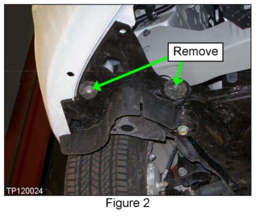 3. Remove the bolt and clip on both fender protectors where shown in Figure 2.