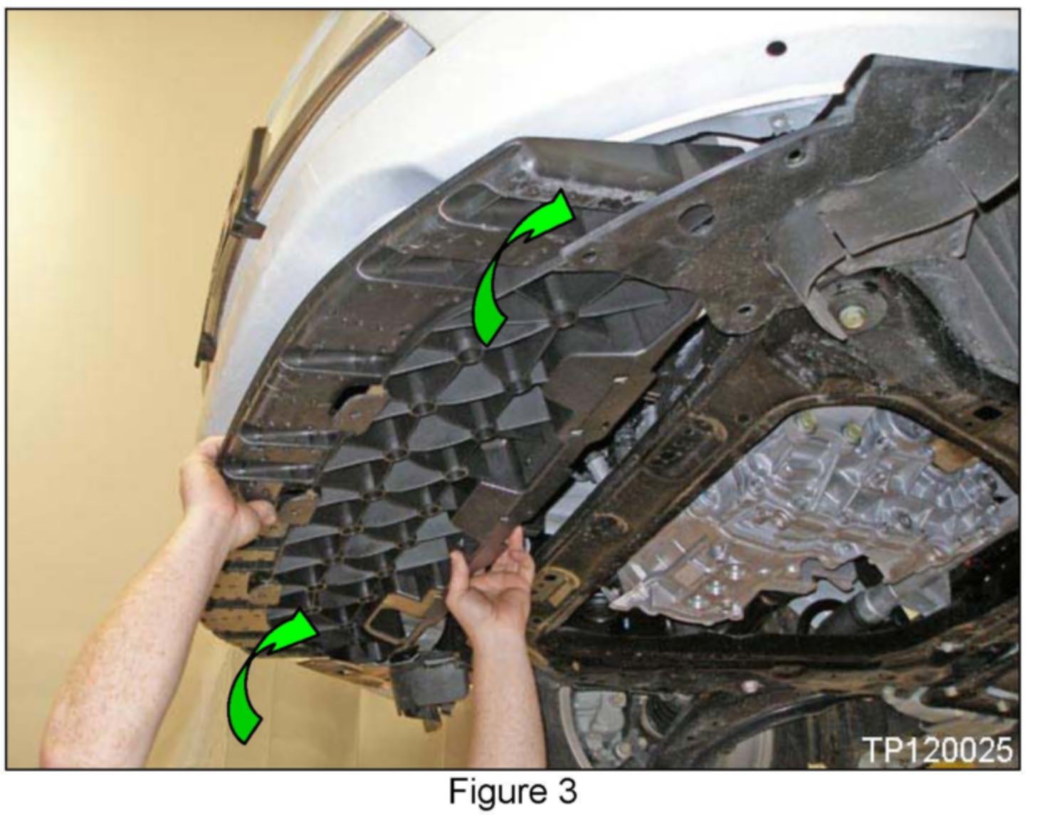 The existing bolts that attach the bumper fascia are not fastened until the front under cover is reinstalled (step 9).