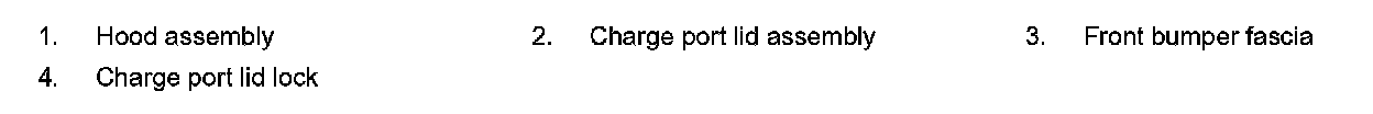 7.Adjust the surface height of charge port lid assembly, hood assembly and front bumper fascia according to the specified value, by moving charge port lid lock.