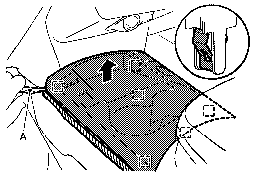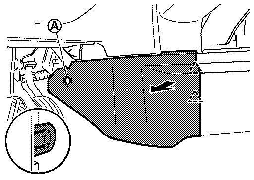 3.Insert remover tool (A) between instrument lower center cover and center console assembly to disengage the metal clips as shown in the figure.