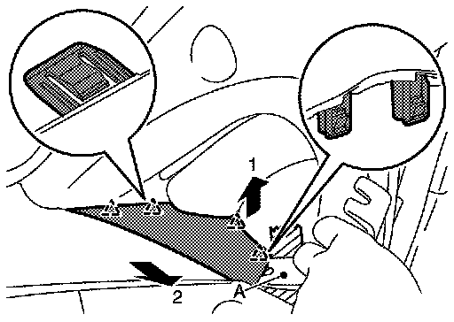 2.Disengage instrument side panel fixing pawls with a remover tool (A) according to the numerical order 1