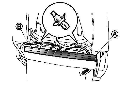 8.Disconnect rear heated seat switch harness connector (A) and remove rear heated seat switch harness clip (B) (only for passenger seat with heated seat).