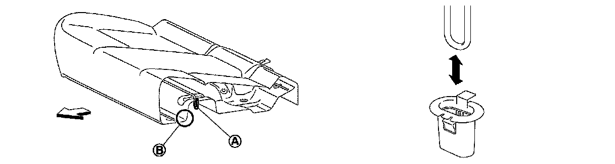 1.Lift up seat cushion at a close position (B) of engaging portion (A) and disengage seat cushion hook.