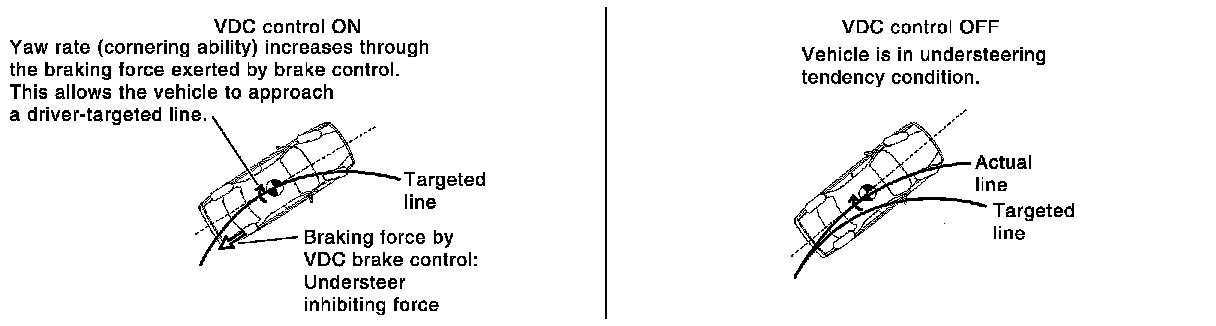 - Fail-safe function is adopted. When a malfunction occurs in VDC function, the control is suspended for VDC