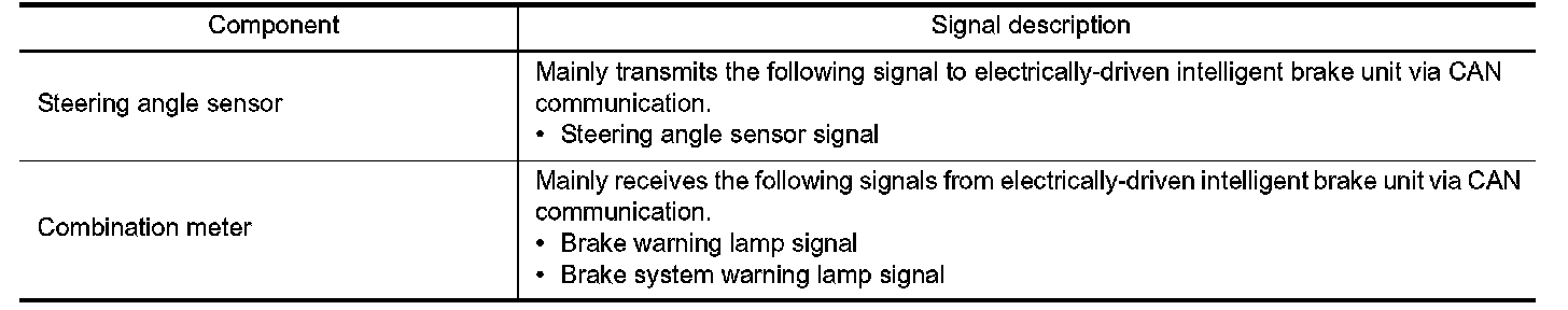 - When a malfunction occurs in the electrically-driven intelligent brake unit, the VDC function performs control (boost operation). At the same time, the brake warning lamp (red) and brake system warning lamp (yellow)