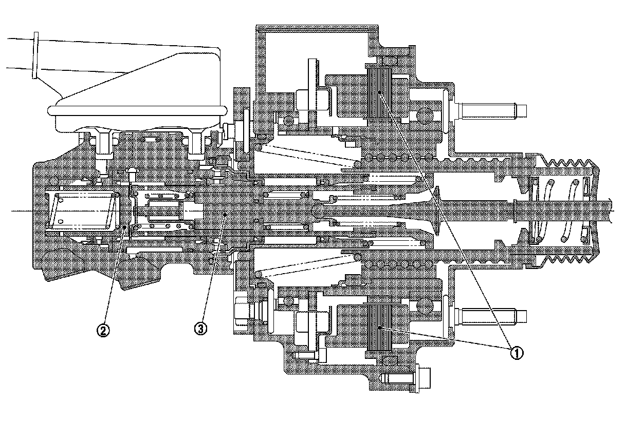 - The fluid pressure generated by the master cylinder is sent to each brake caliper via the ABS actuator and electric unit (control unit).