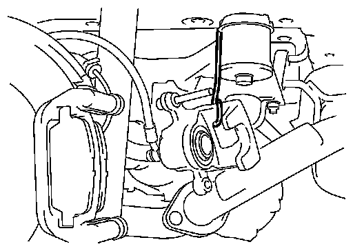 3.Remove cylinder body from torque member, and suspend the cylinder body with suitable wire so that the brake hose will not stretch.