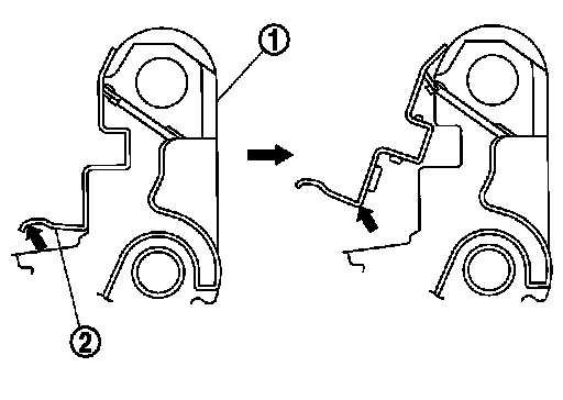 1.Install the pad retainers (1) to the torque member (2) if the pad retainers has been removed.