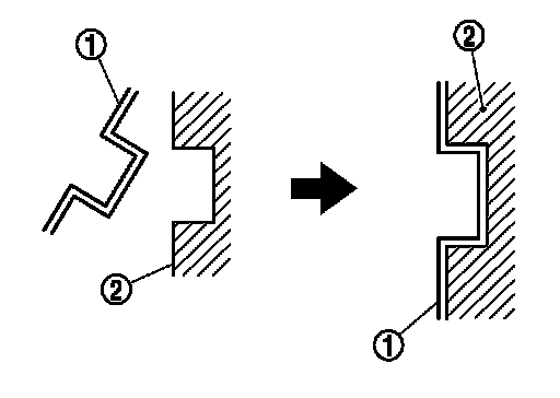 - To prevent damage to the parts, never deform the pad retainer (2) when removing the pad retainer from the torque member (1).