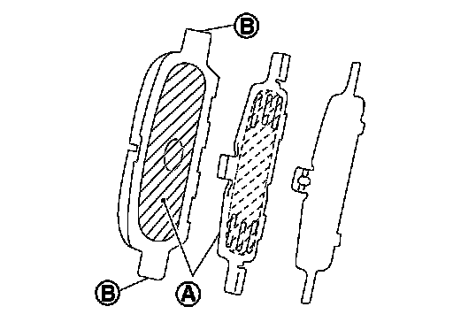 2.Apply MOLYKOTE� AS880N or silicone-based grease to the mating faces (A) between the brake pads and the shims, and install the shims to the brake pad.