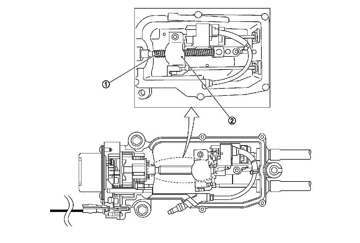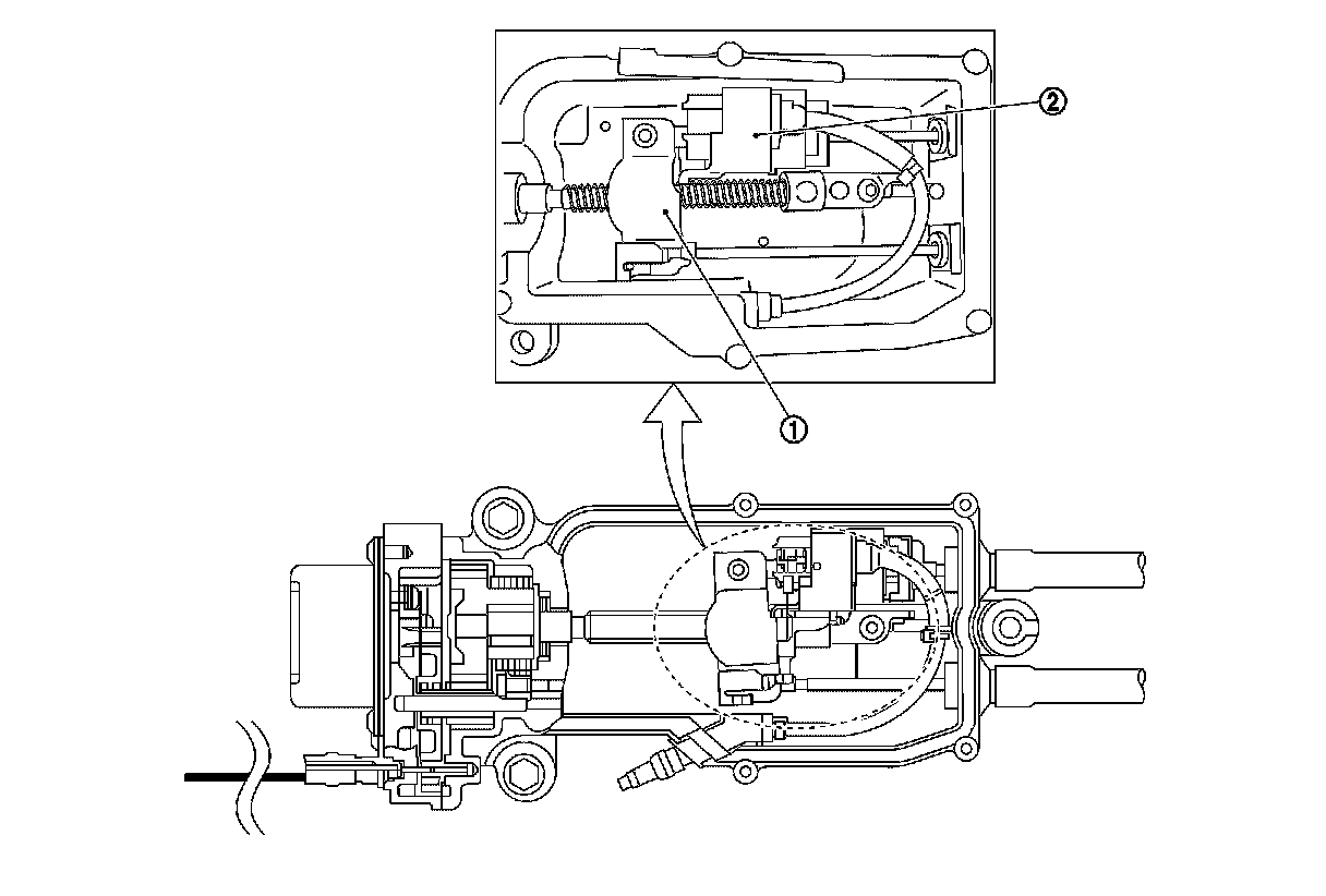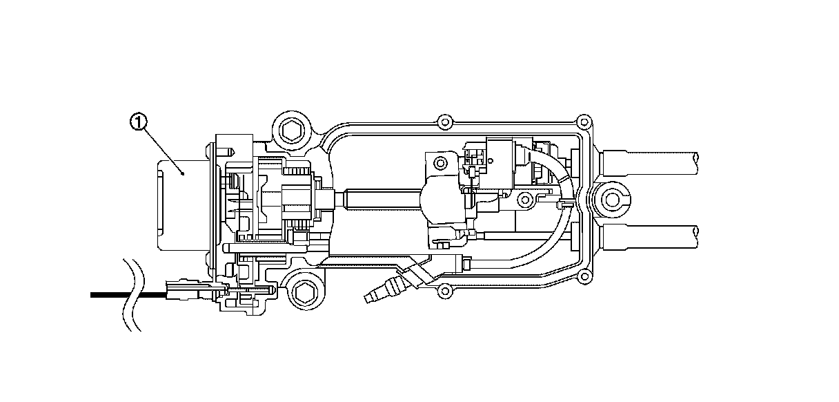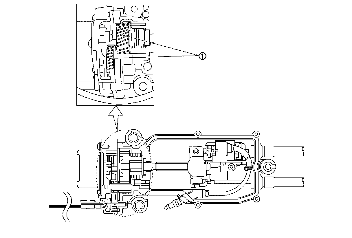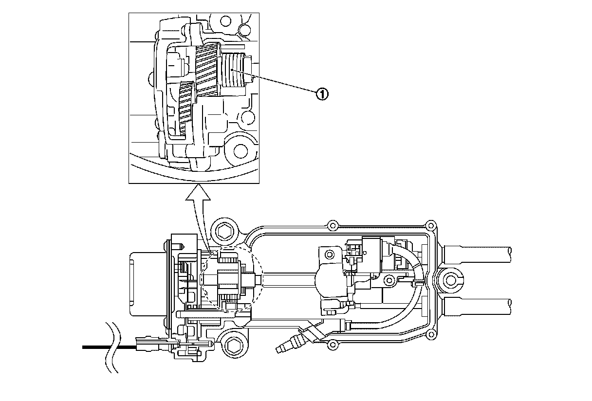 - When the emergency release cable is rotated counterclockwise while pressing it to parallel direction to axis with the cap removed, deceleration gear is rotated through release gear, which results in electric parking brake release.