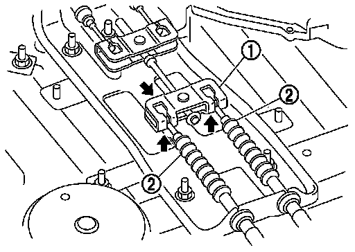 b.Pull cable (2) of parking brake actuator downward to remove cable of parking brake actuator from equalizer.