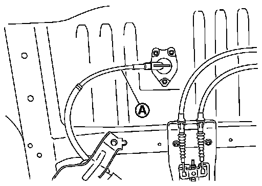 10.Remove emergency release cable (A) of parking brake actuator from vehicle.